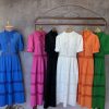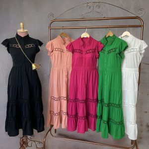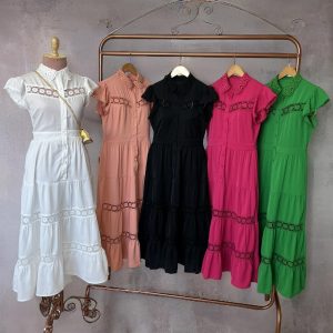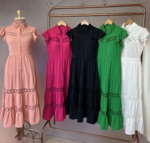 Vestido Midi Botão Encapado, Detalhes e Gola No Guipir